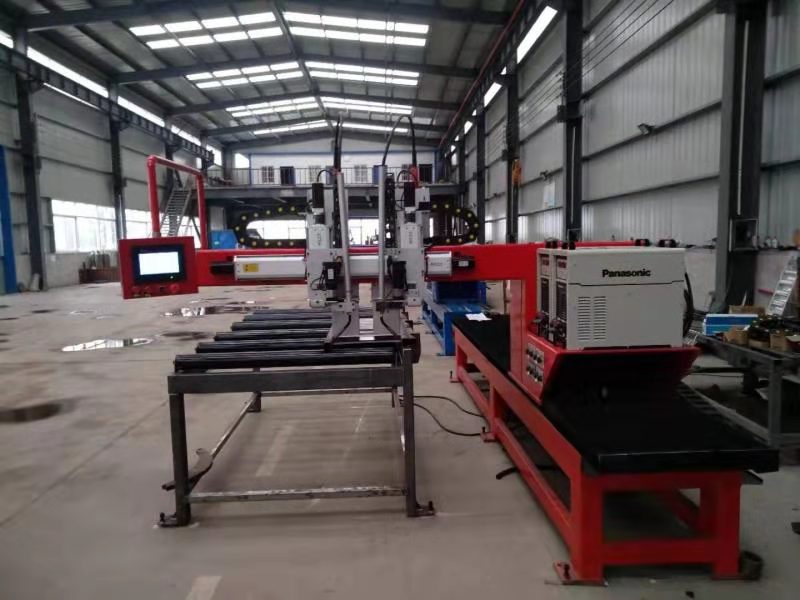 掛車生產(chǎn)過程中,車廂門因量大、工序復(fù)雜、焊接難度高,制約著生產(chǎn)產(chǎn)量。金瑞公司在原單槍焊接工藝基礎(chǔ)上,研發(fā)出雙槍自動化焊接設(shè)備。該設(shè)備立足于自動化生產(chǎn)線布置,從起槍、焊接、旋轉(zhuǎn)、收槍、回位,實(shí)行全自動編程控制,一臺設(shè)備相當(dāng)于兩臺設(shè)備生產(chǎn)效率,避免了焊接生產(chǎn)中活件翻轉(zhuǎn)工序,勞動效率提高兩倍以上。